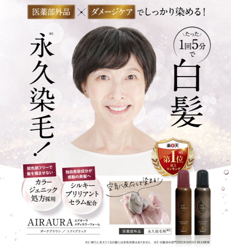永久染毛! ※注;新たに生えてくる白髪には染色効果はありません