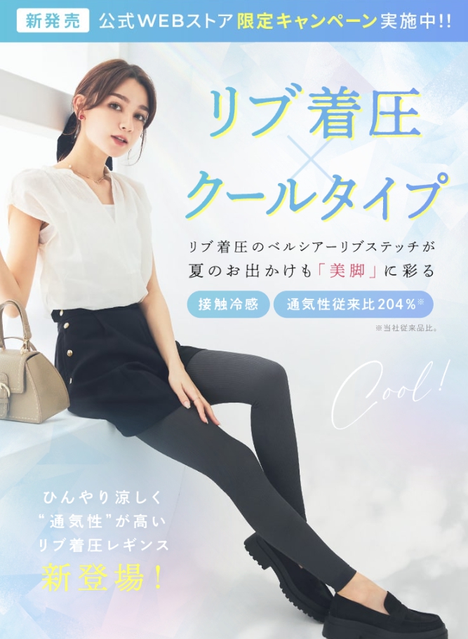 「ベルシアーリブステッチクール」は東京ガールズコレクションのTGC Beauty partner商品で、SNSでも話題の高機能リブ着圧レギンスです。